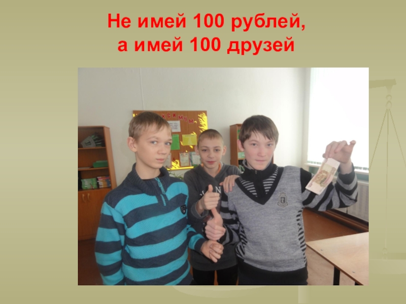 Слайд 9Не имей 100 рублей, а имей 100 друзей