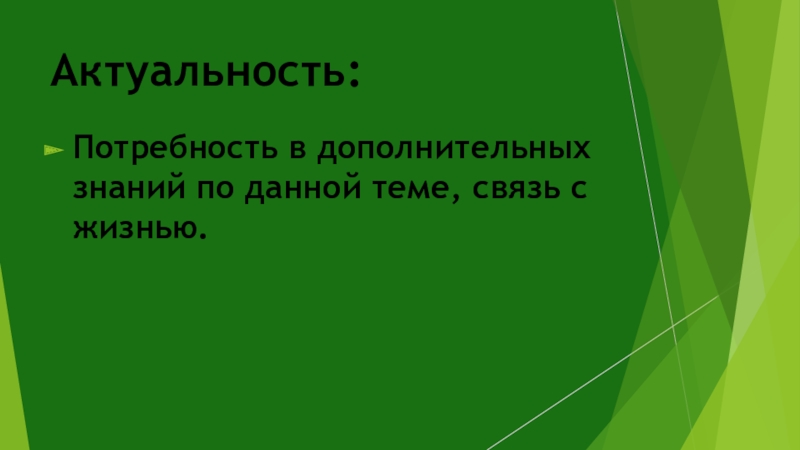 Потребность в дополнительных знаний по данной теме, связь с жизнью.