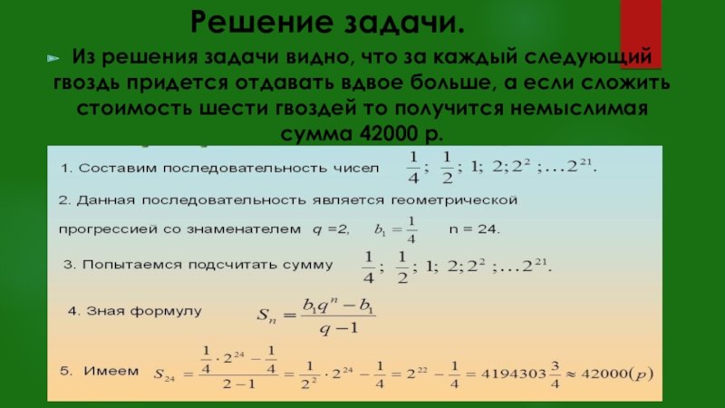 Нестандартные задачи геометрической прогрессии не входящие в школьный курс математики.