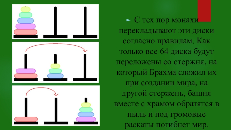 Слайд 19С тех пор монахи перекладывают эти диски согласно правилам. Как только