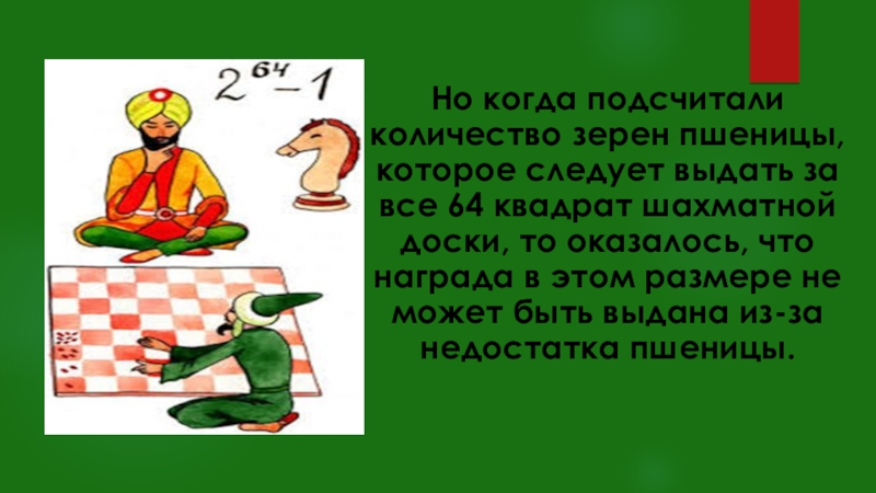 Слайд 12Но когда подсчитали количество зерен пшеницы, которое следует выдать за все
