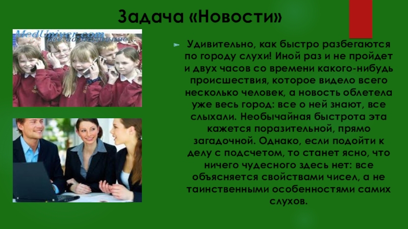 в 10 час. новость узнают 3280 + (3 х 2187) = 9841 чел.