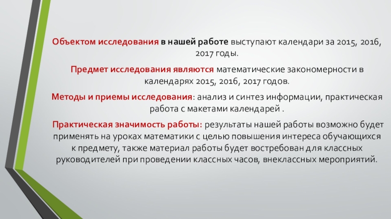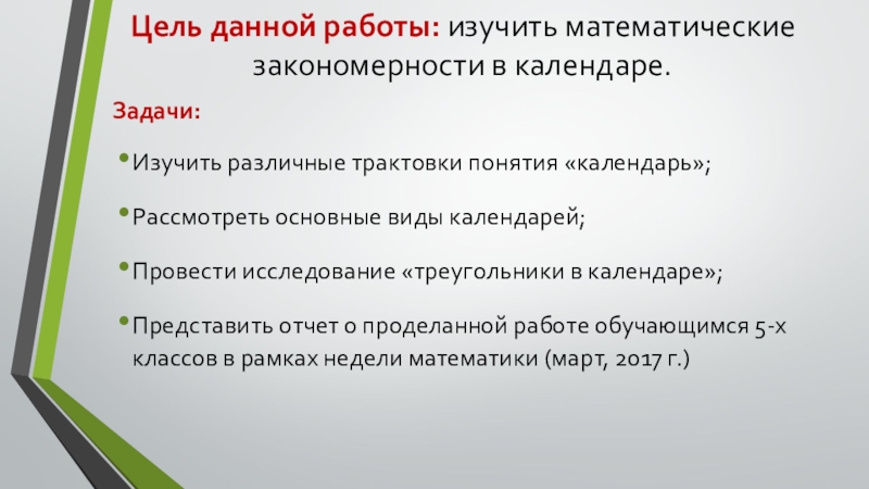 Исходя из этого, возникает вопрос: «Какие математические особенности и закономерности присутствуют в календаре?».