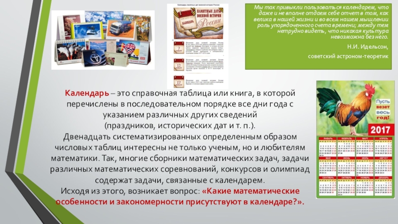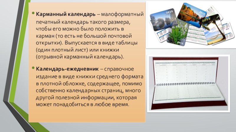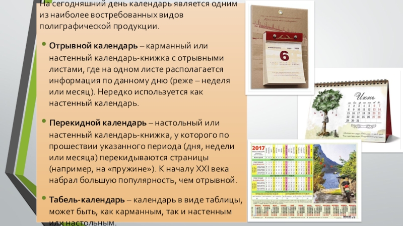 Календарь – это справочная таблица или книга, в которой перечислены в последовательном порядке все дни года с указанием различных других сведений