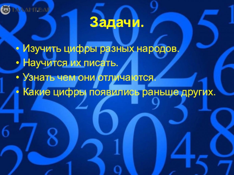 Сегодня в этой работе я хочу рассказать про цифры разных
