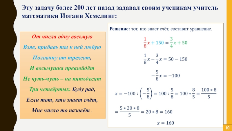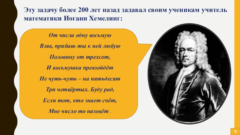 Эту задачу более 200 лет назад задавал своим ученикам учитель математики Иоганн Хемелинг: