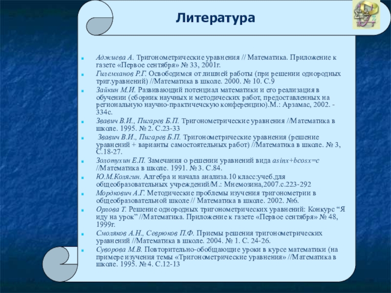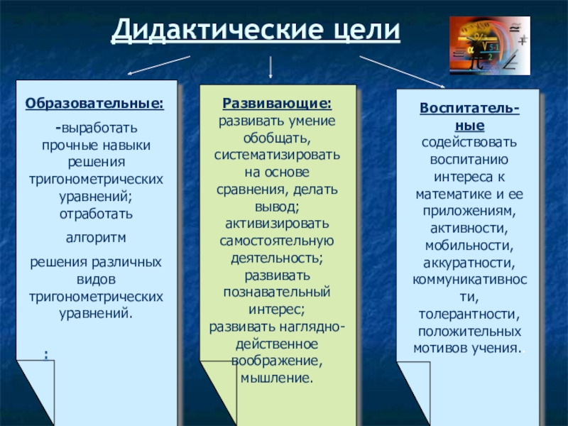 элементами исследовательских процедур, связанных с поиском, отбором, анализом, обобщением способов решения тригонометрических уравнений