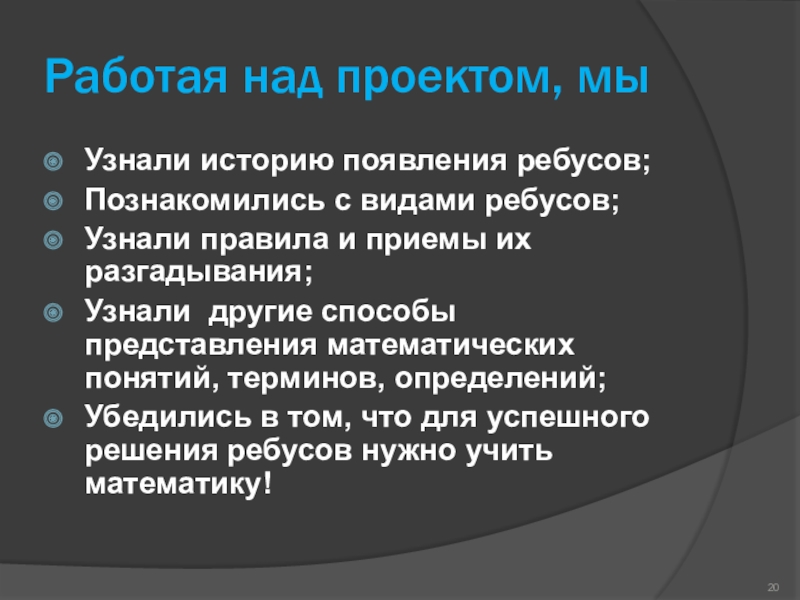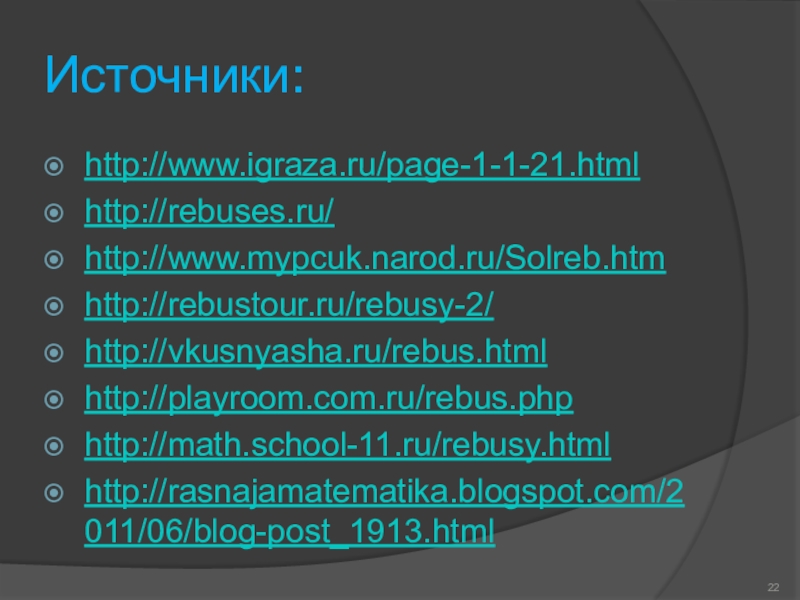 Это сайт презентаций, где можно хранить и обмениваться своими презентациями, докладами, проектами, шаблонами в формате PowerPoint с другими пользователями. Мы помогаем школьникам, студентам, учителям, преподавателям хранить и обмениваться учебными материалами.