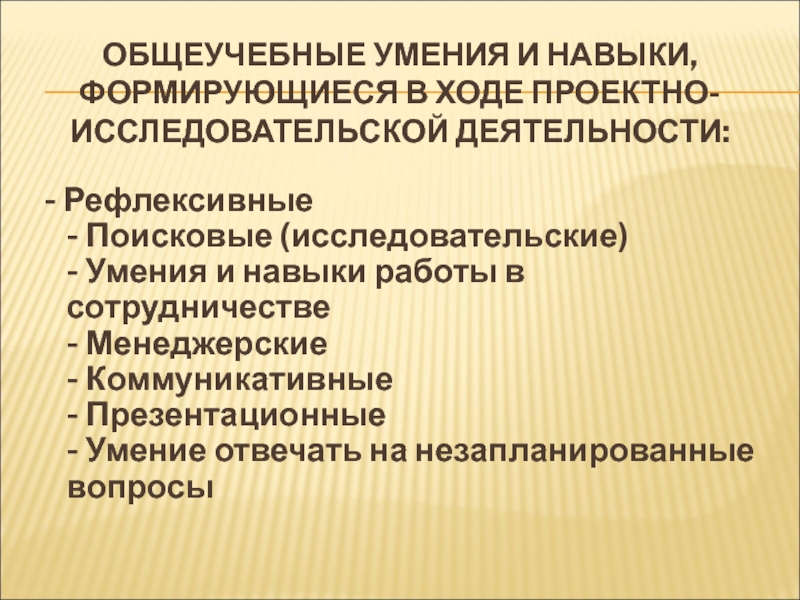 ОБЩЕУЧЕБНЫЕ УМЕНИЯ И НАВЫКИ, ФОРМИРУЮЩИЕСЯ В ХОДЕ ПРОЕКТНО- ИССЛЕДОВАТЕЛЬСКОЙ ДЕЯТЕЛЬНОСТИ: