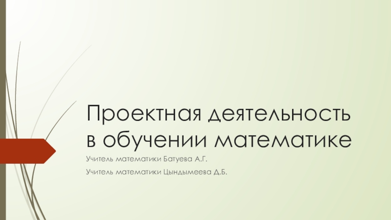 Проектная деятельность в обучении математикеУчитель математики Батуева А.Г.Учитель математики Цындымеева Д.Б.