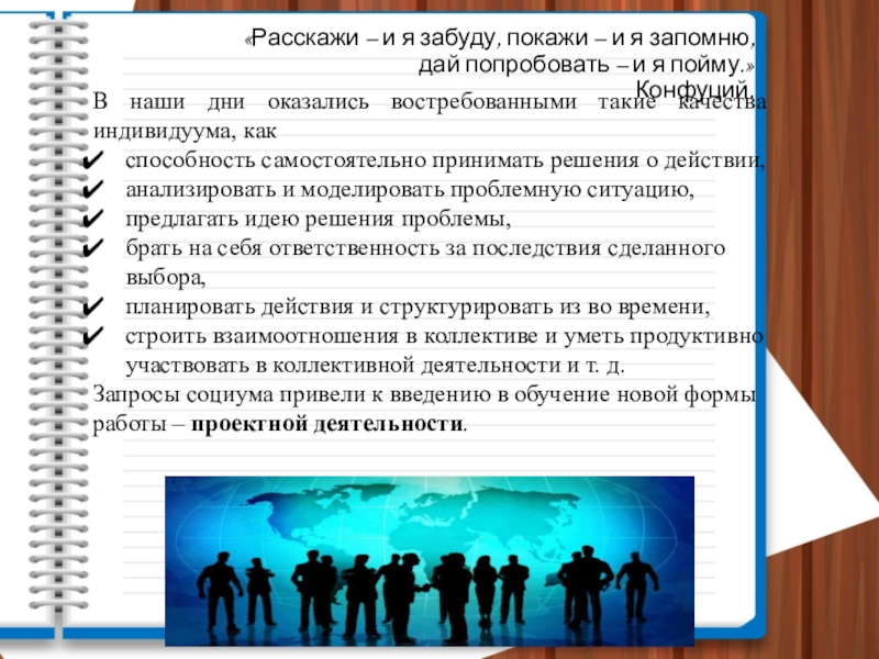 Запросы социума привели к введению в обучение новой формы работы – проектной деятельности.