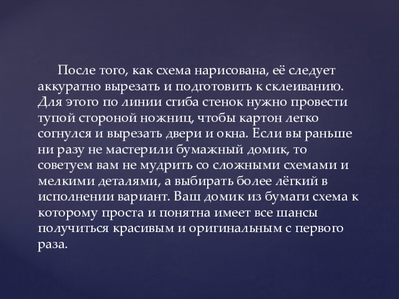 Презентация, доклад на тему Проектная работа домик из бумаги 5 класс