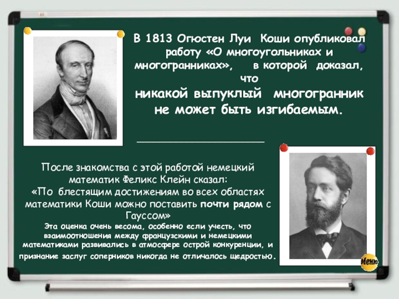 После знакомства с этой работой немецкий математик Феликс Клейн сказал: «По блестящим достижениям во всех областях математики Коши можно поставить почти рядом с Гауссом»