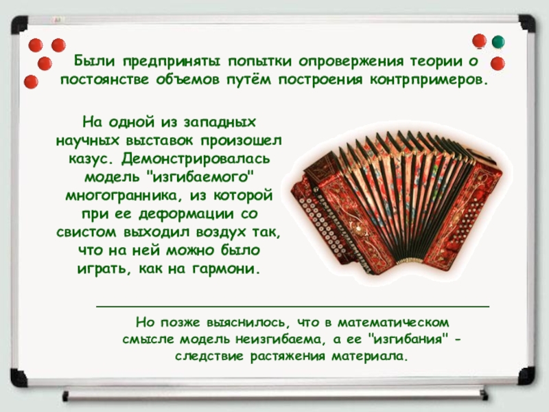 Были предприняты попытки опровержения теории о постоянстве объемов путём построения контрпримеров.