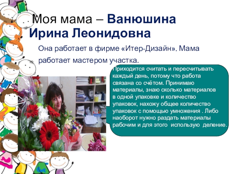 Слайд 28 Моя мама – Ванюшина Ирина Леонидовна
