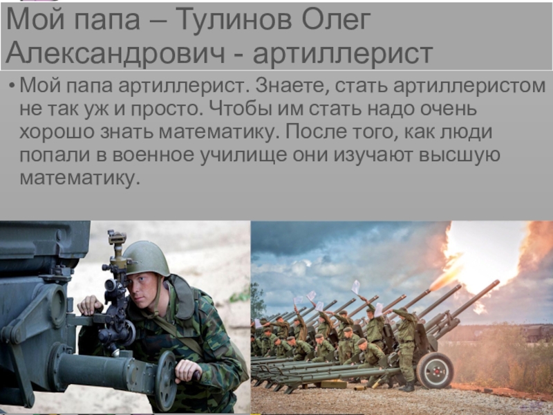 Слайд 35Мой папа – Тулинов Олег Александрович - артиллерист
