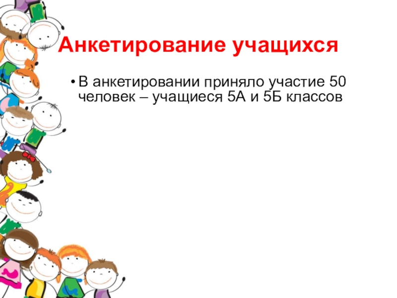 В анкетировании приняло участие 50 человек – учащиеся 5А и