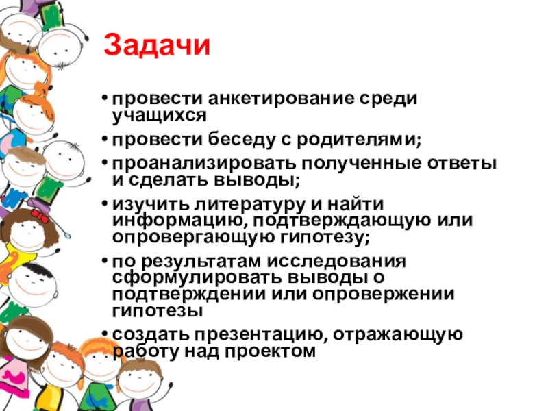 изучить литературу и найти информацию, подтверждающую или опровергающую гипотезу;