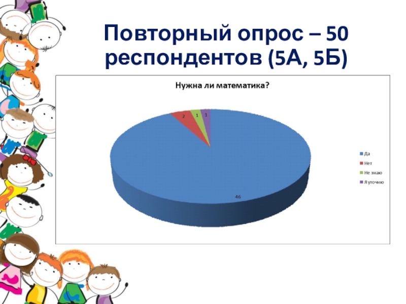 Слайд 45Повторный опрос – 50 респондентов (5А, 5Б)