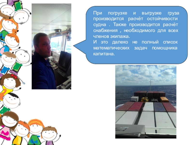 Слайд 16Работа помощника капитана напрямую связана с математикой . Он рассчитывает маршрут