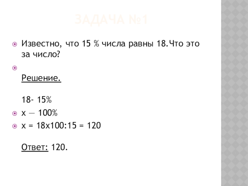 Известно, что 15 % числа равны 18.Что это за число?