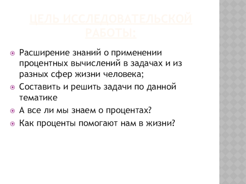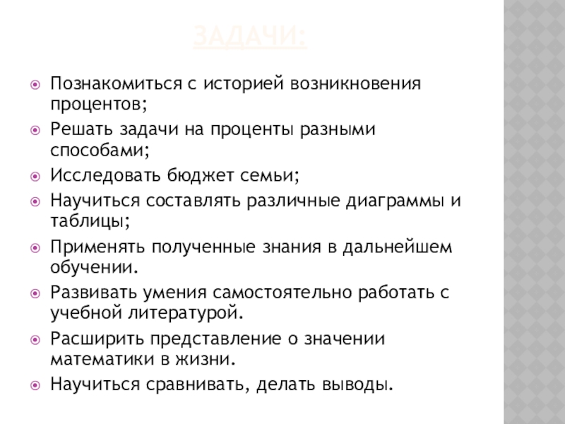 Познакомиться с историей возникновения процентов;