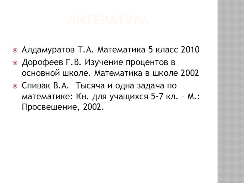 Спивак В.А. Тысяча и одна задача по математике: Кн. для учащихся 5-7 кл. – М.: Просвешение, 2002.