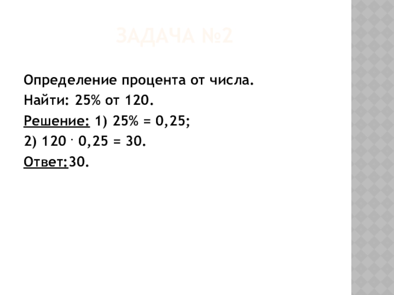 Найти: 25% от 120.
