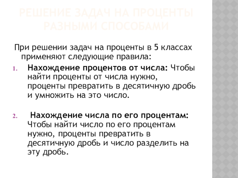 Решать задачи на проценты разными способами;