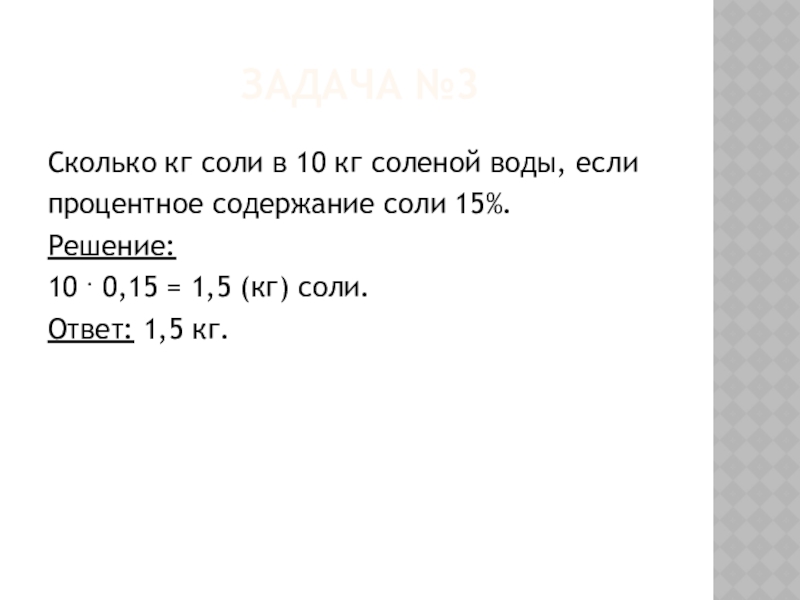 Сколько кг соли в 10 кг соленой воды, если
