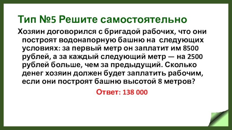 данным геологоразведки, на глубине 3 км. В течение рабочего дня бурильщики проходят 300 метров в глубину, но за ночь скважина вновь «заиливается», то есть заполняется грунтом на 30 метров. За сколько рабочих дней нефтяники пробурят скважину до глубины залегания нефти?