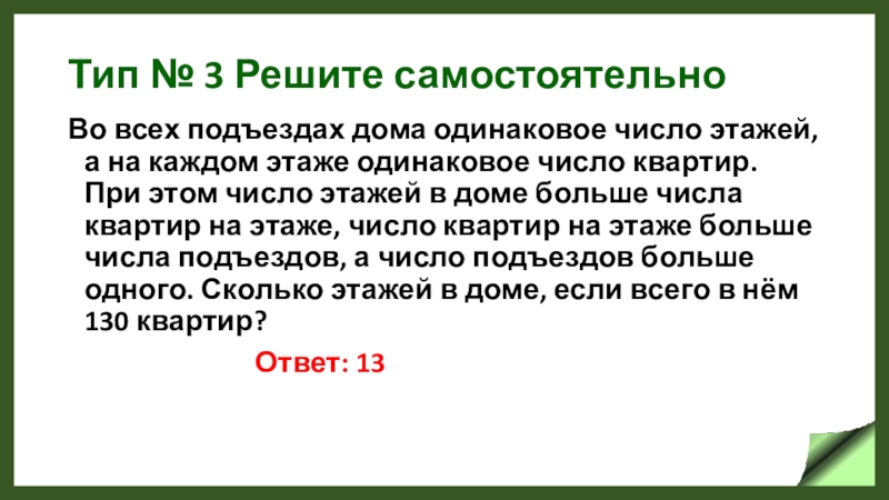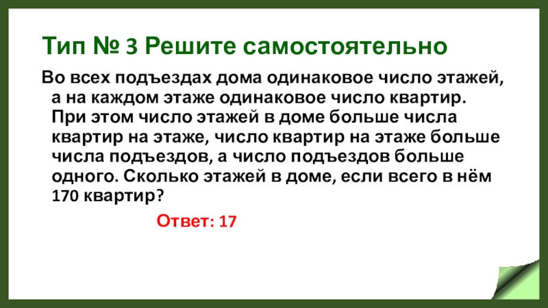 Во всех подъездах дома одинаковое число этажей, а на каждом