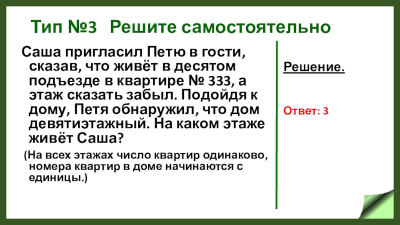 Саша пригласил Петю в гости, сказав, что живёт в седьмом