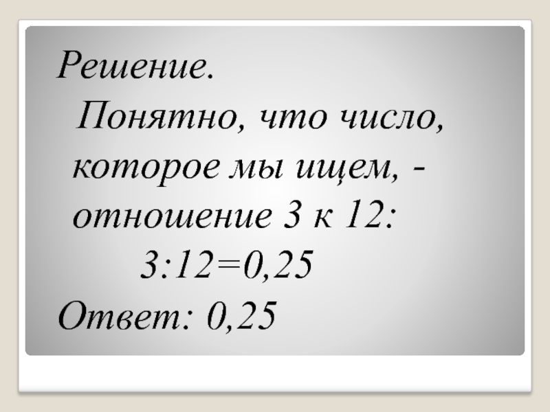 Решение.   Понятно, что число, которое мы ищем, - отношение 3 к 12: