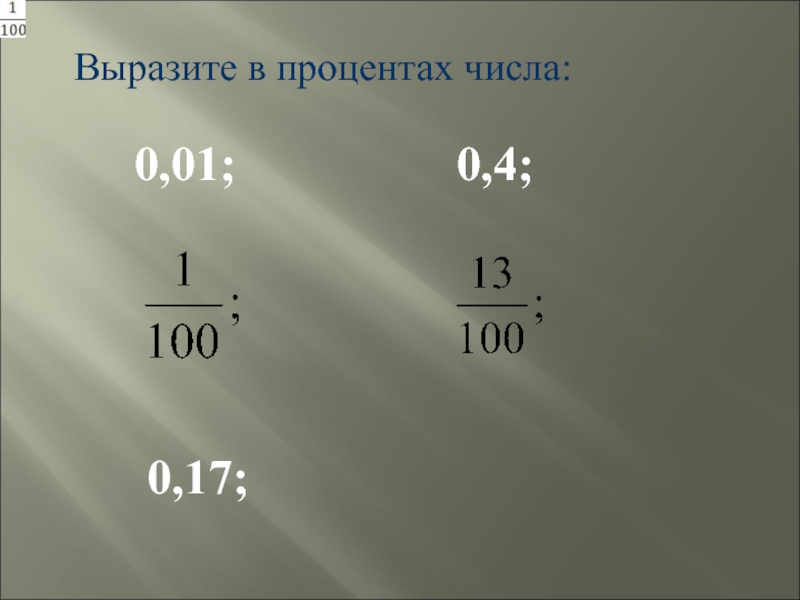 выработать умение находить процентное отношение двух чисел а так же решать задачи, которые предусматривают данное действие.