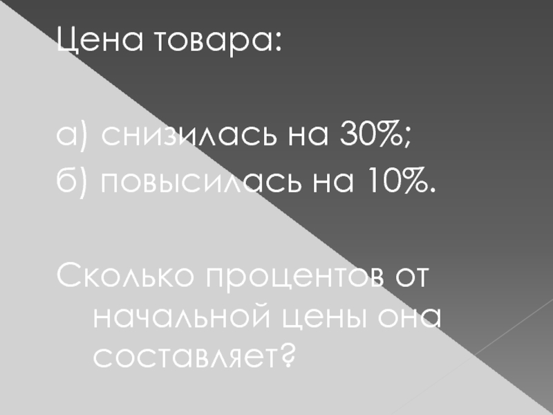 Цена товара: а) снизилась на 30%; б) повысилась на 10%. Сколько процентов от начальной цены она составляет?