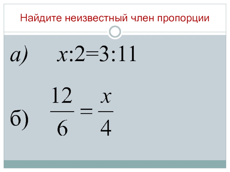 Найдите неизвестный член пропорции а)   х:2=3:11б)
