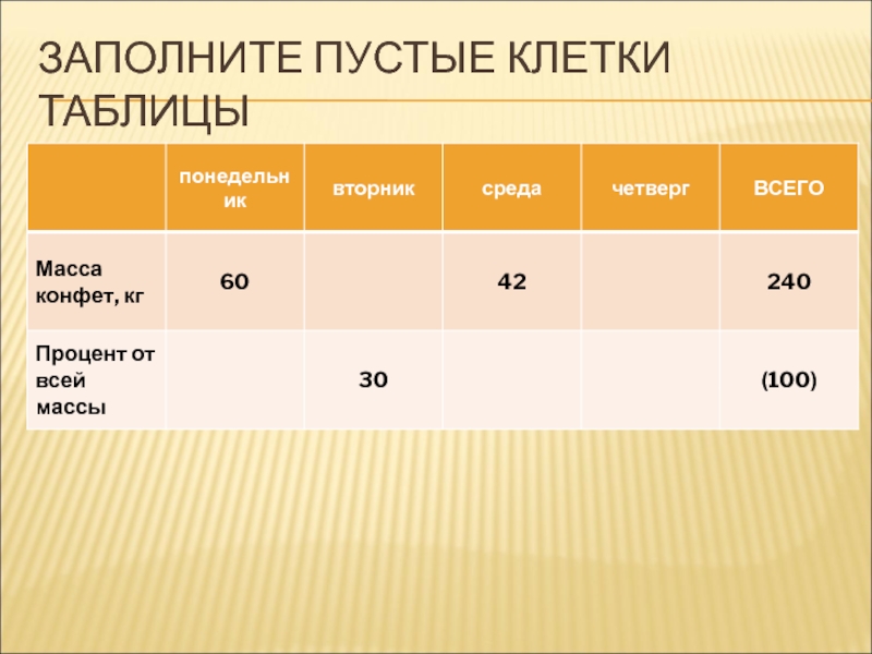 Слайд 13ЗАПОЛНИТЕ ПУСТЫЕ КЛЕТКИ ТАБЛИЦЫ