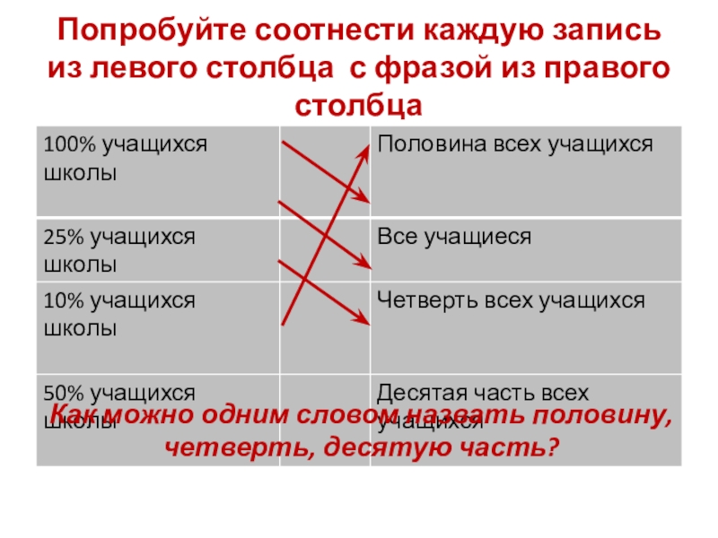 Как можно одним словом назвать половину, четверть, десятую часть?