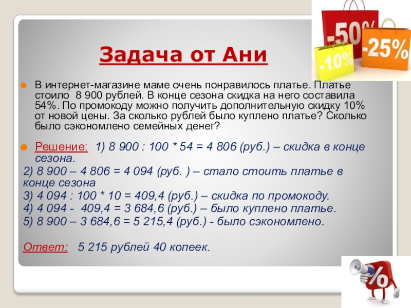 Ответ: На 10% уменьшилась цена букета гвоздик.