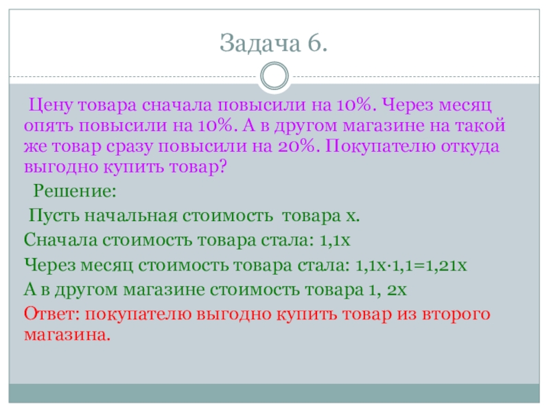 повысили на 10%. А в другом магазине на такой же товар сразу повысили на 20%. Покупателю откуда выгодно купить товар?