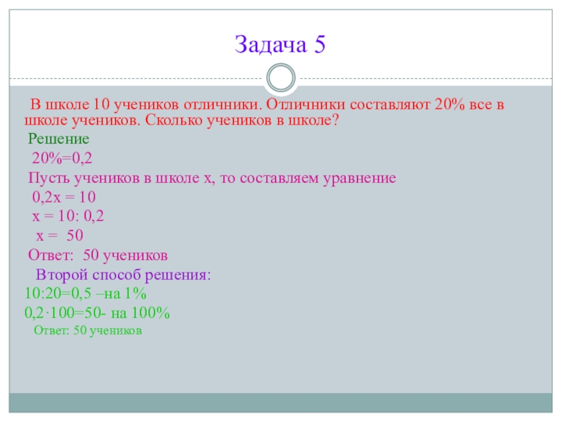 В школе 10 учеников отличники. Отличники составляют 20% все
