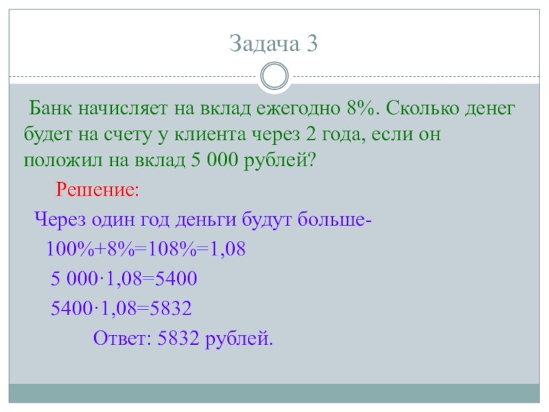 Банк начисляет на вклад ежегодно 8%. Сколько денег будет