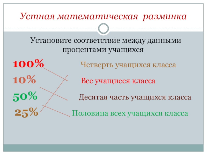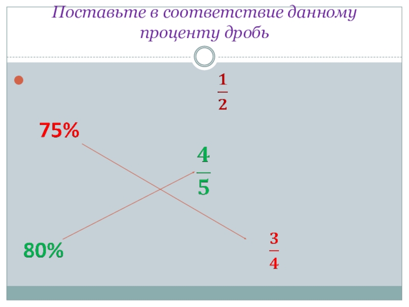 Слайд 4Поставьте в соответствие данному проценту дробь