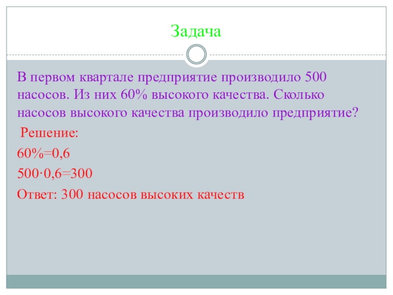 В первом квартале предприятие производило 500 насосов. Из них 60% высокого