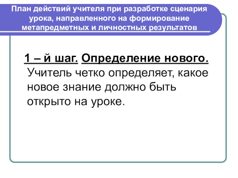 1 – й шаг. Определение нового. Учитель четко определяет, какое новое знание должно быть открыто на уроке.