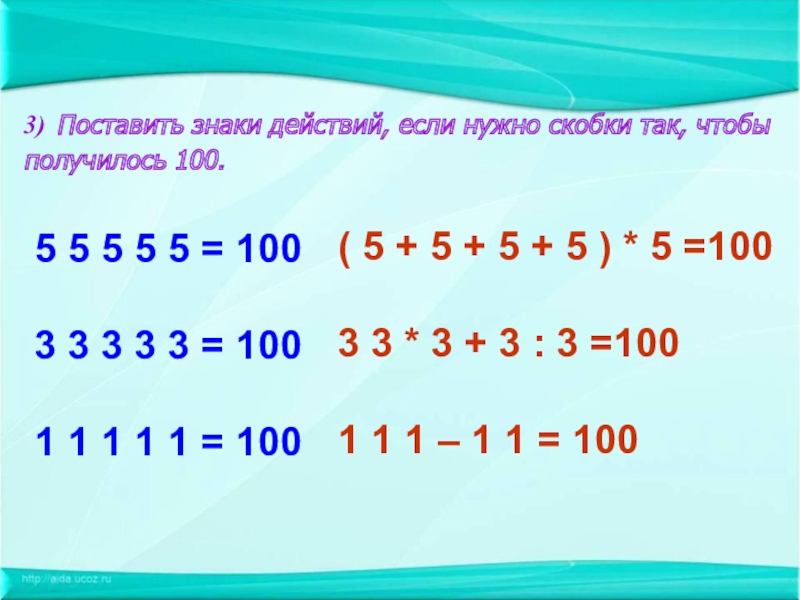 3 3 * 3 + 3 : 3 =100