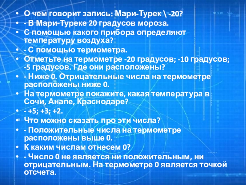 О чем говорит запись: Мари-Турек \ -20?- В Мари-Туреке 20 градусов мороза.С помощью какого прибора определяют температуру
