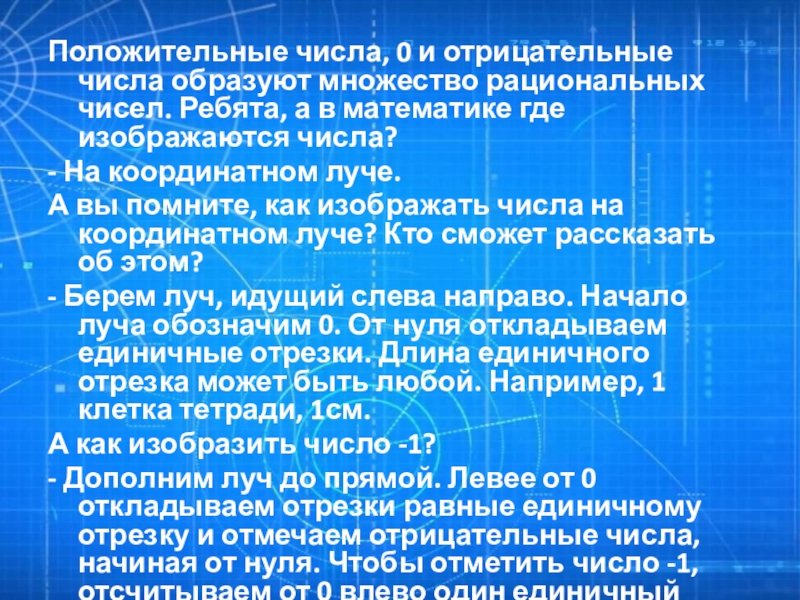 Положительные числа, 0 и отрицательные числа образуют множество рациональных чисел. Ребята, а в математике где изображаются числа?-