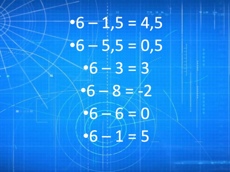 6 – 1,5 = 4,56 – 5,5 = 0,56 – 3 = 36 – 8 = -26